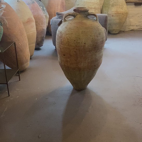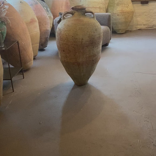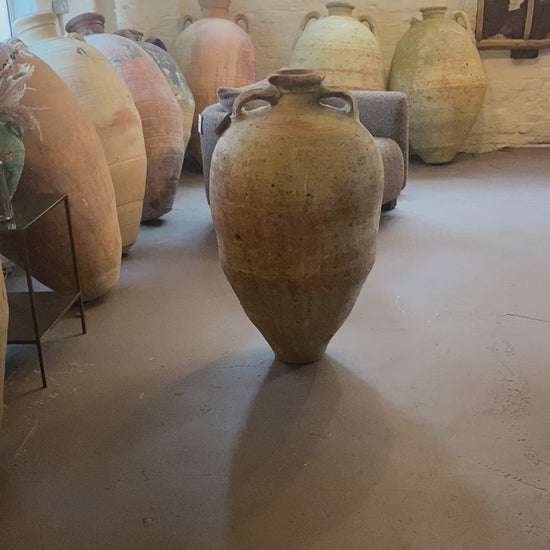 Sourced from the sun-drenched landscapes of Tunisia, Tommy is an original 19th-century olive vessel with rich history embedded in every curve. Once used to store olives and oil, its handcrafted form and aged terracotta finish speak to decades of utility and beauty. No two pieces are alike—each tells its own quiet story through unique markings, wear, and patina. A timeless object that adds warmth, character, and soul to any space.