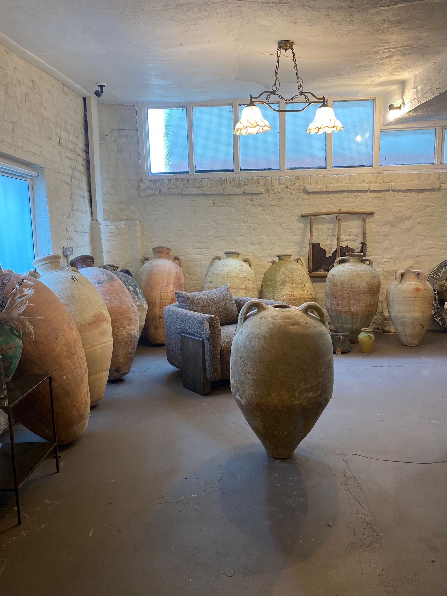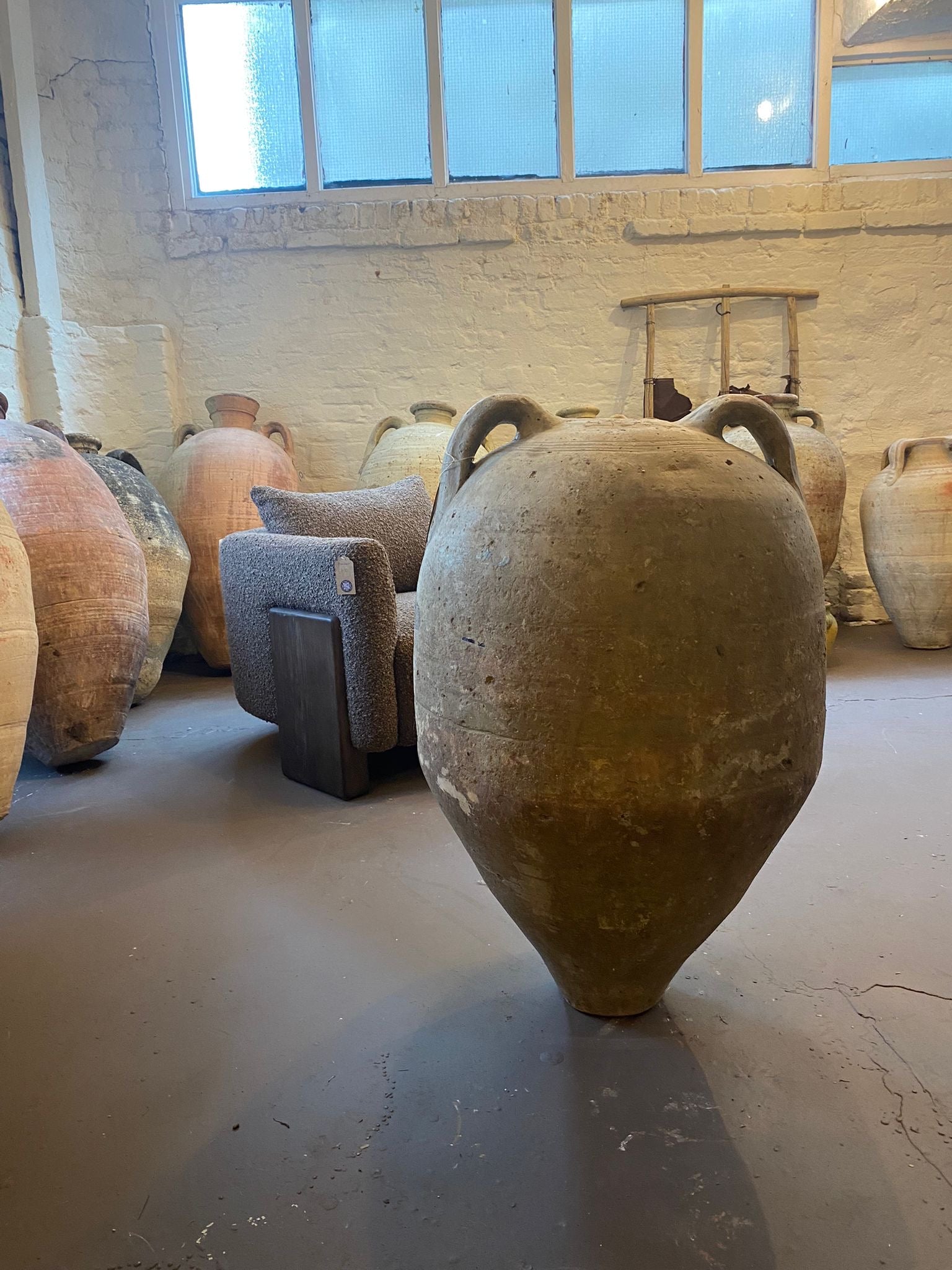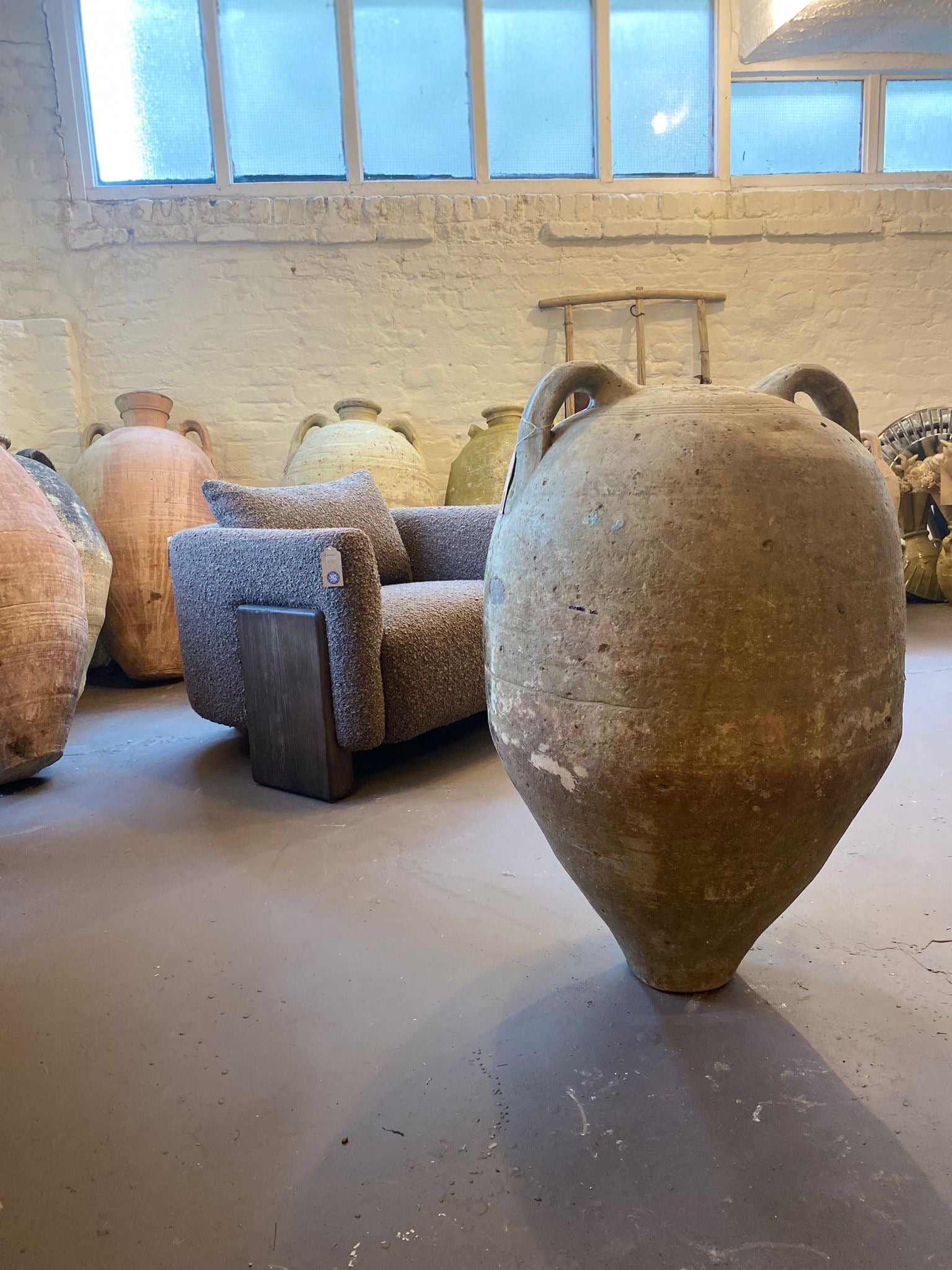 Sourced from the sun-drenched landscapes of Tunisia, Zeina is an original 19th-century olive vessel with rich history embedded in every curve. Once used to store olives and oil, its handcrafted form and aged terracotta finish speak to decades of utility and beauty. No two pieces are alike—each tells its own quiet story through unique markings, wear, and patina. A timeless object that adds warmth, character, and soul to any space.